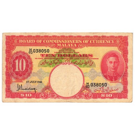 MALAYA 10 Dollars 1941
