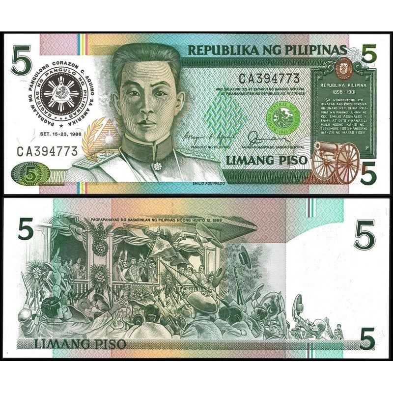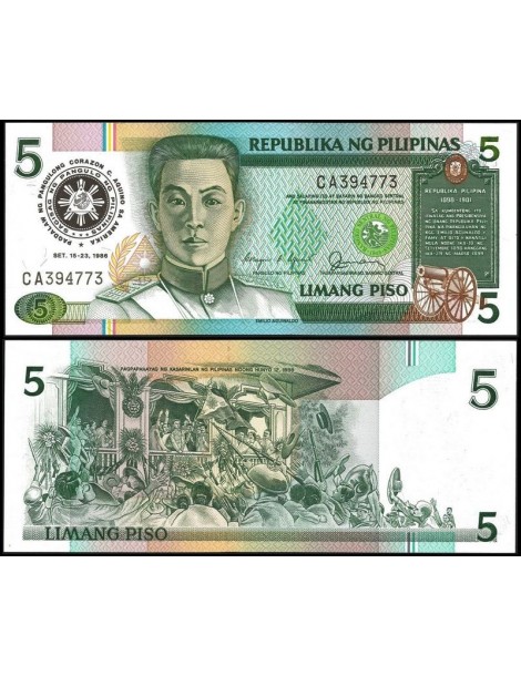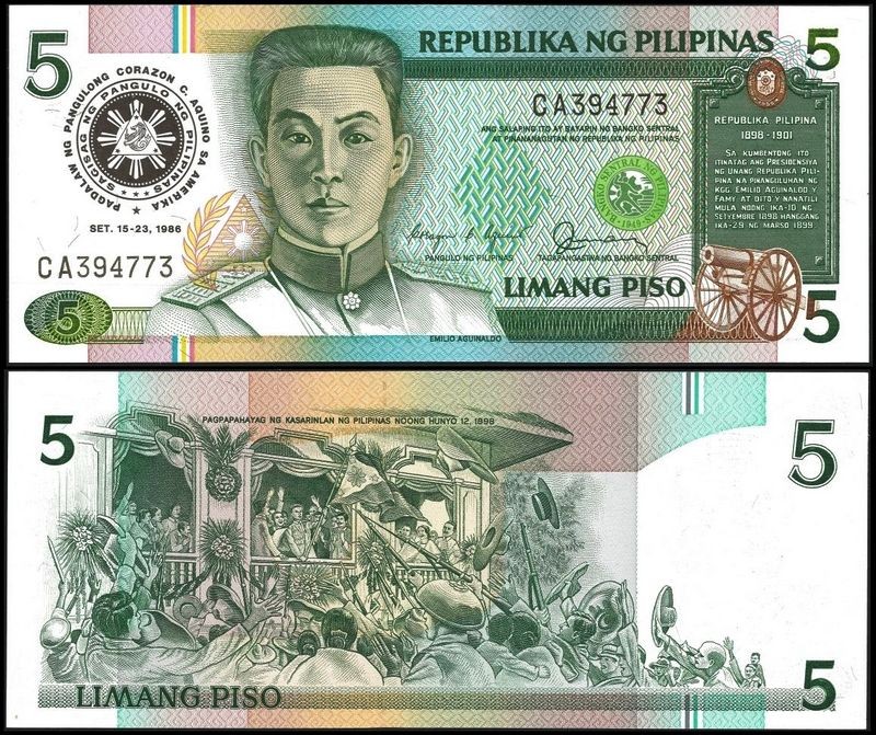 PHILIPPINES 5 Piso 1986 Commemorative "Visit of President Corazon Aquino to the United States"