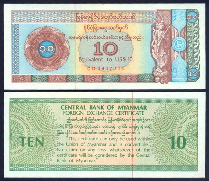 MYANMAR 10 Dollaars 1993