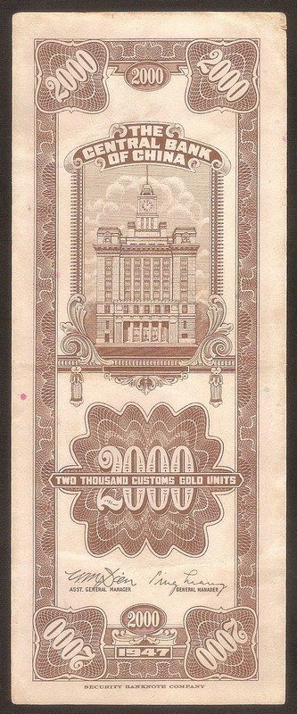 CHINA 2000 Customs Gold Units 1947