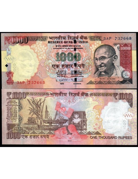 INDIA 1000 Rupees 2012 Plate Letter L