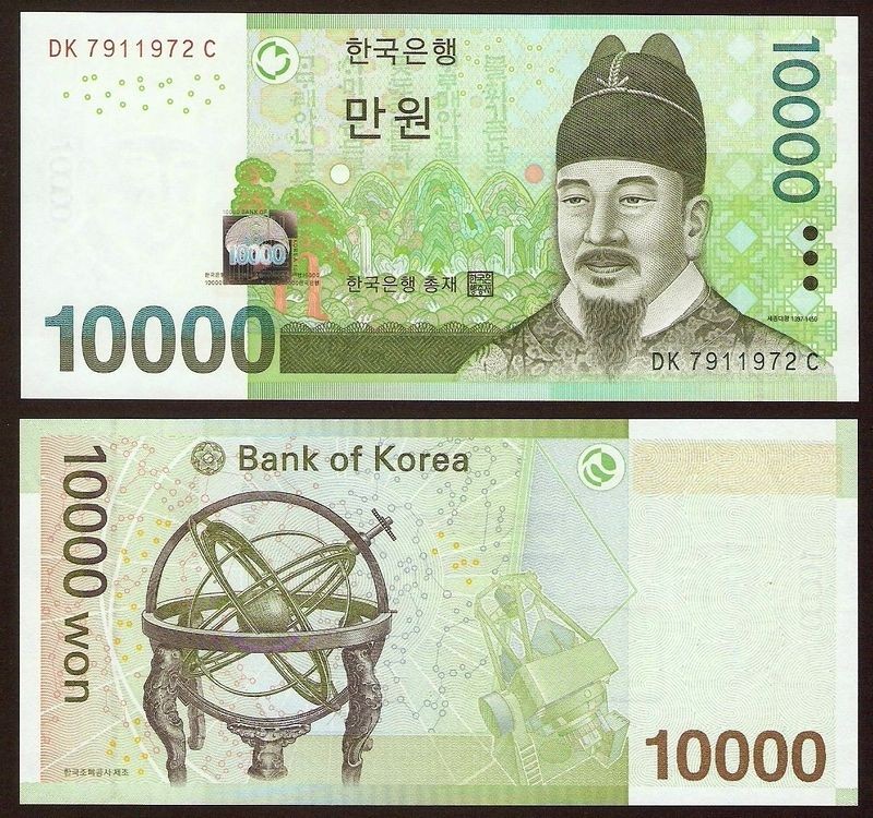 Ritratto del celebre filosofo confuciano Yi Hwang (Toegye), posizionato sul lato destro.