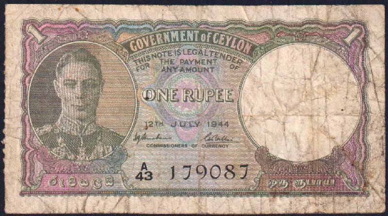 CEYLON 1 Rupee 12.07.1944