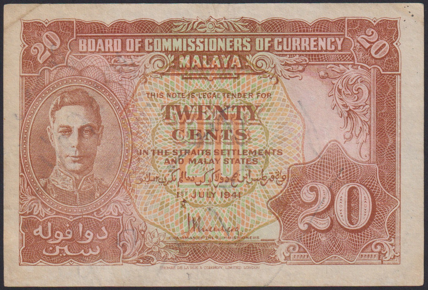 MALAYA 20 Cents 1941