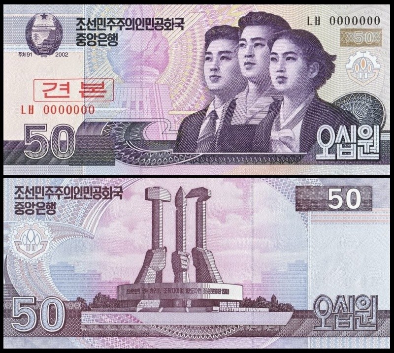 4. NORTH KOREA 50 Won 2002 (2009) SPECIMEN