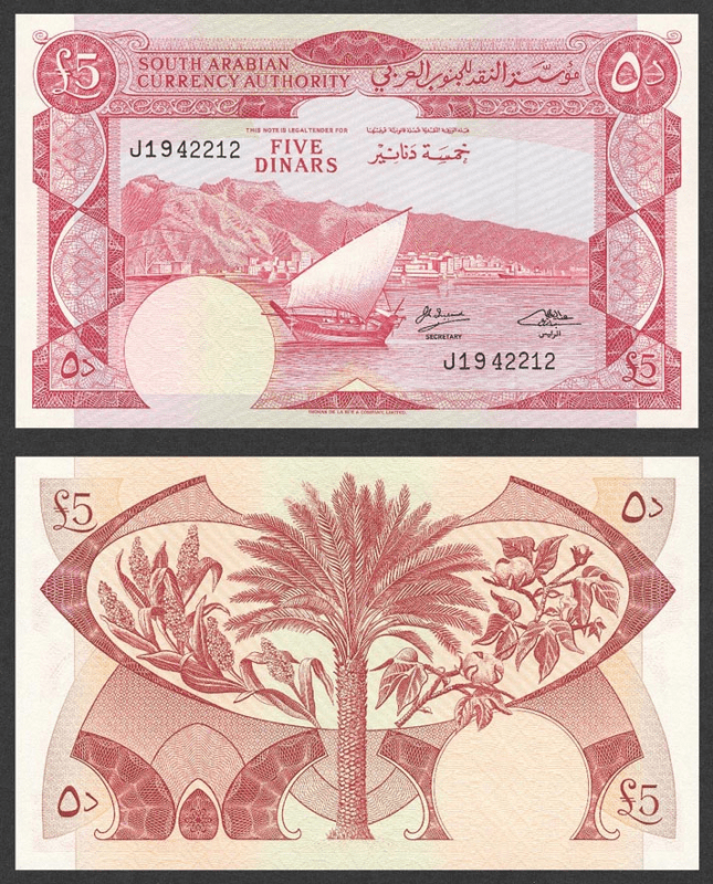 YEMEN DEMOCRATIC REPUBLIC 5 Dinars 1965