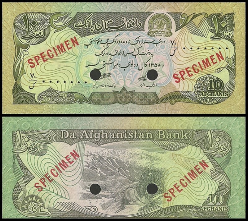 AFGHANISTAN 10 Afghanis 1979 SPECIMEN