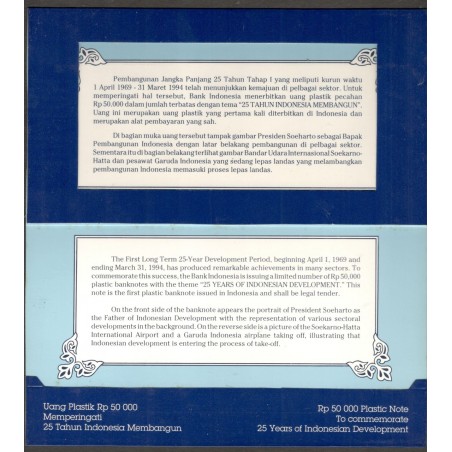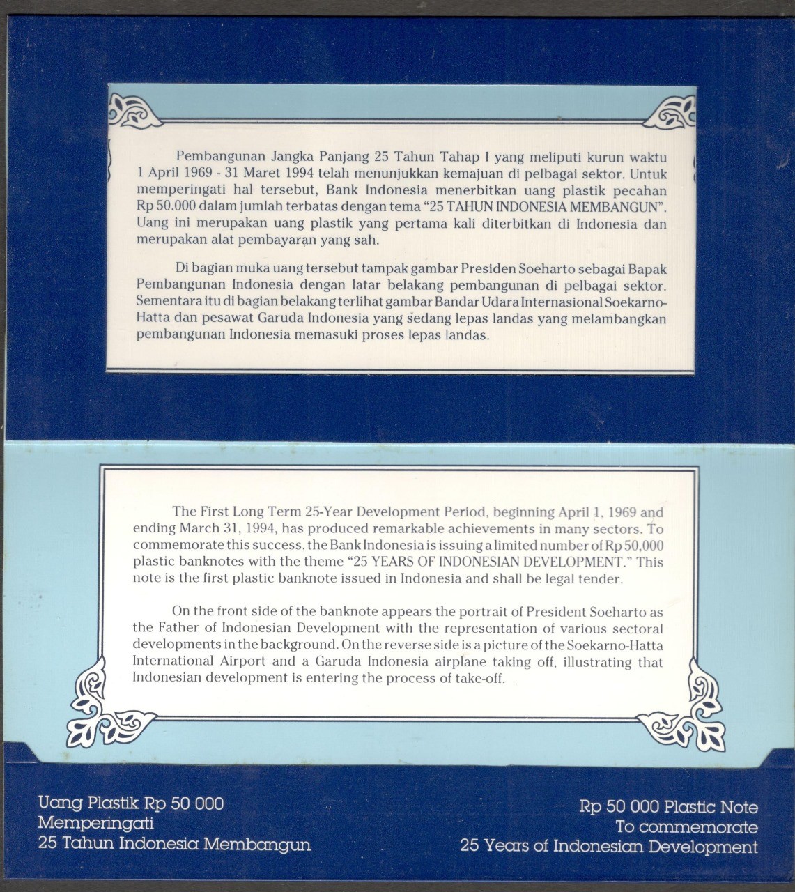 INDONESIA 50.000 Rupiah 1993 Polymer Commemorative Folder