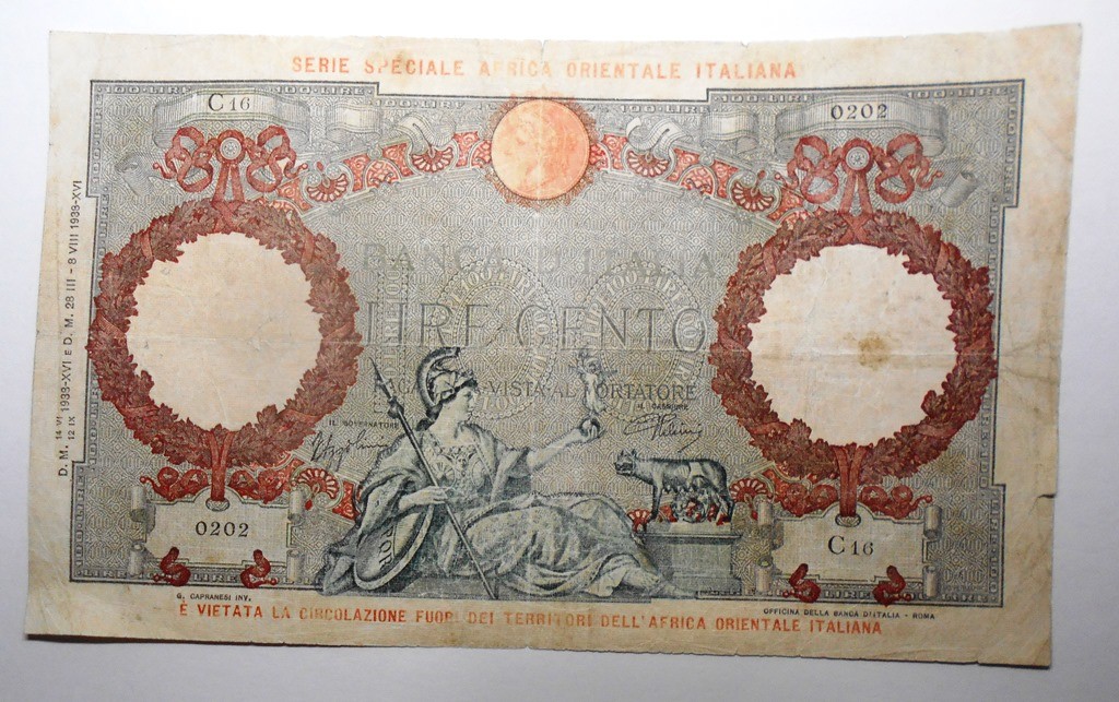 100 Lire 12.9.1938 SERIE SPECIALE AFRICA ORIENTALE ITALIANA