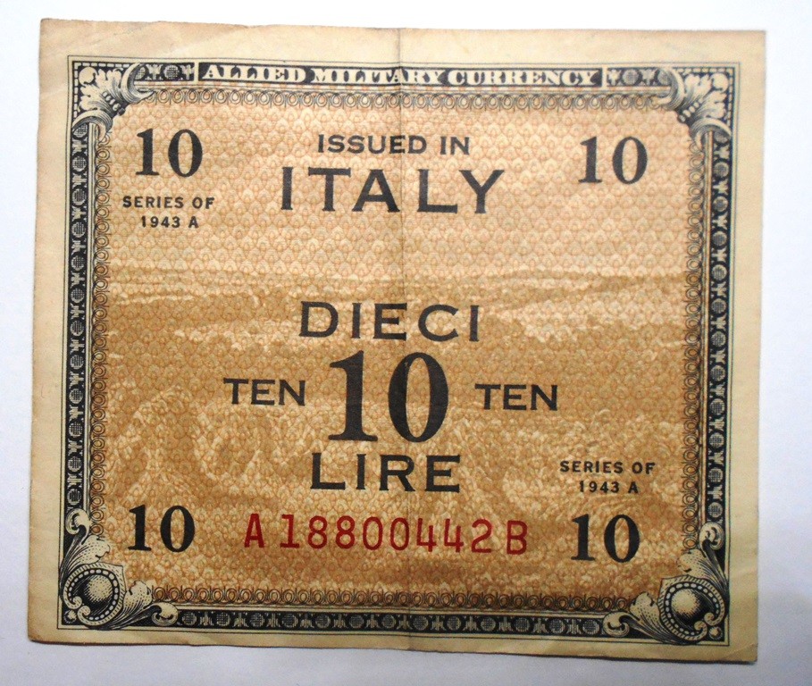 10 AM Lire BILINGUE 1943 FLC OCCUPAZIONE AMERICANA