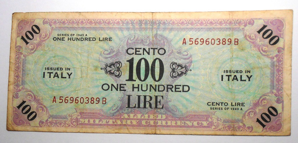 100 AM Lire BILINGUE 1943 OCCUPAZIONE AMERICANA A/B
