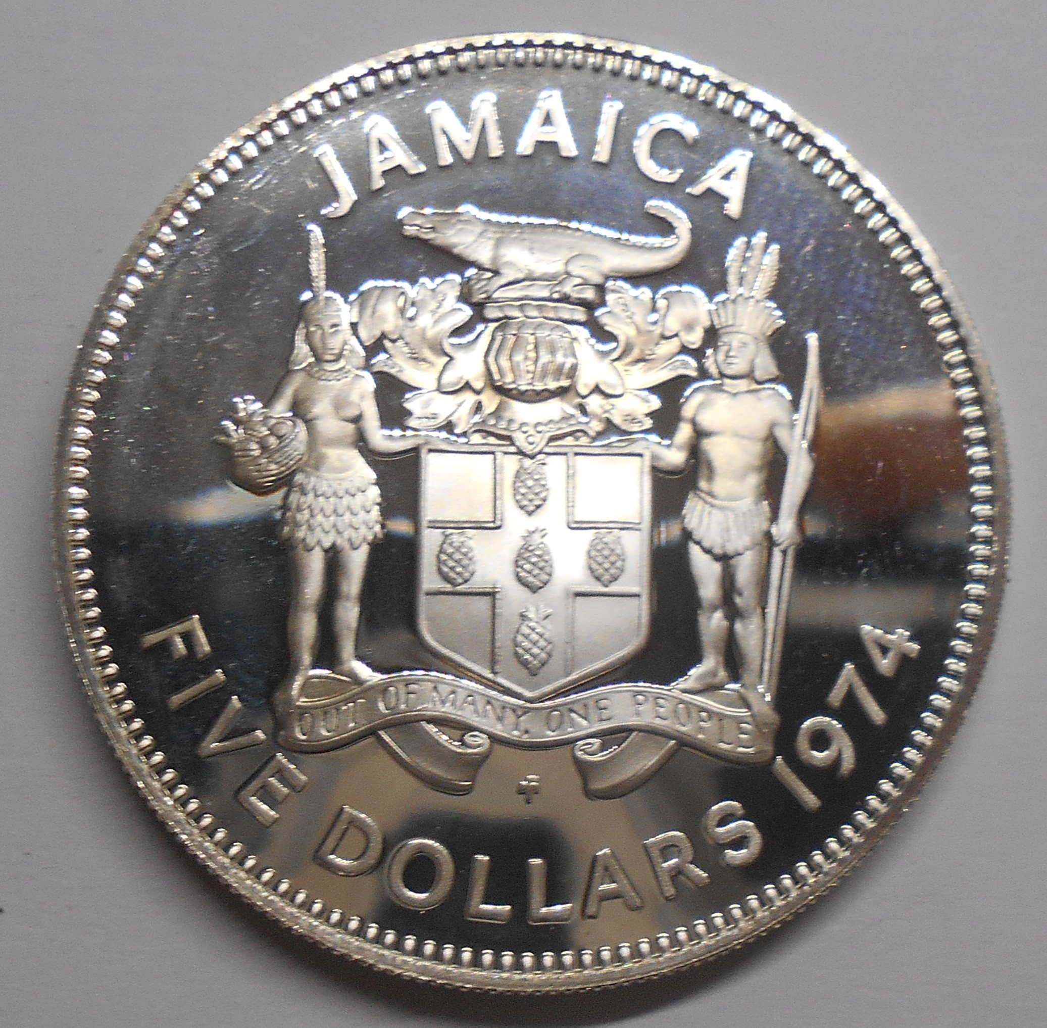 4. JAMAICA 5 Dollars 1974 Norman W. Manley AG PROOF