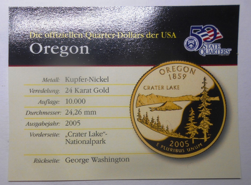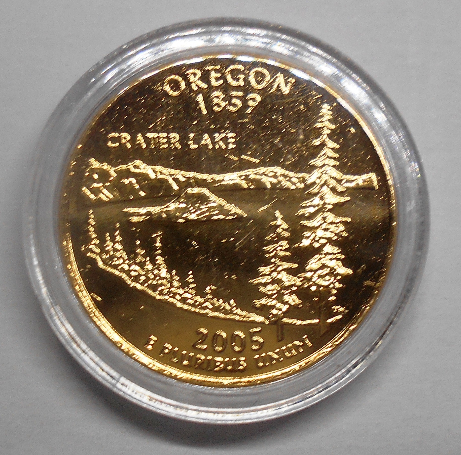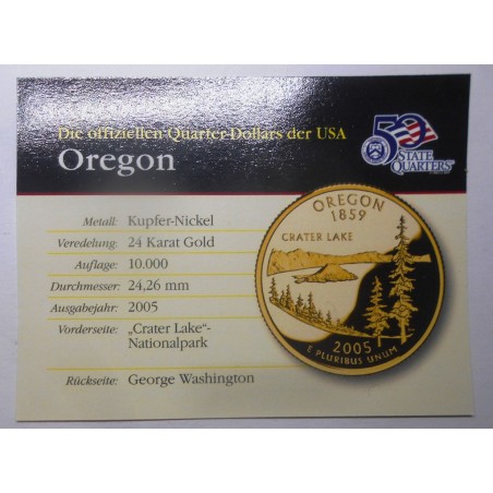 USA 1/4 Dollar 2005 D Oregon (24 Karat Gold Plated)