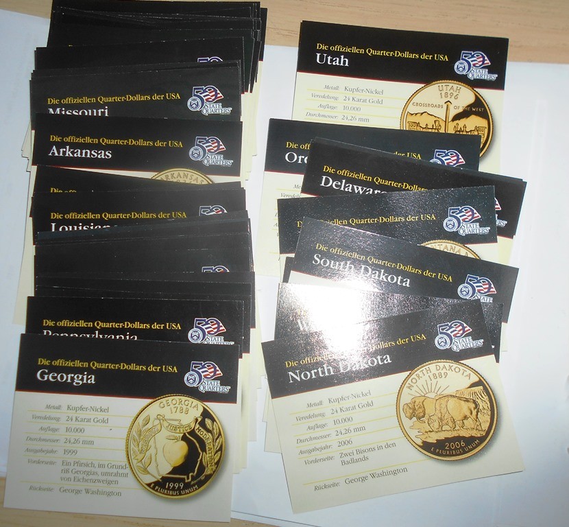 USA Set 1999/2008 1/4 Dollar Commemorative Gold Plated