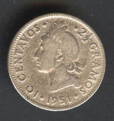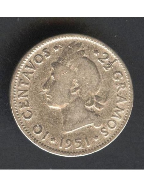 DOMINICAN REPUBLIC 10 Centavos 1951 AG