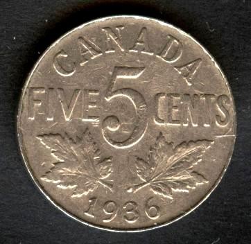 CANADA 5 Cents 1936