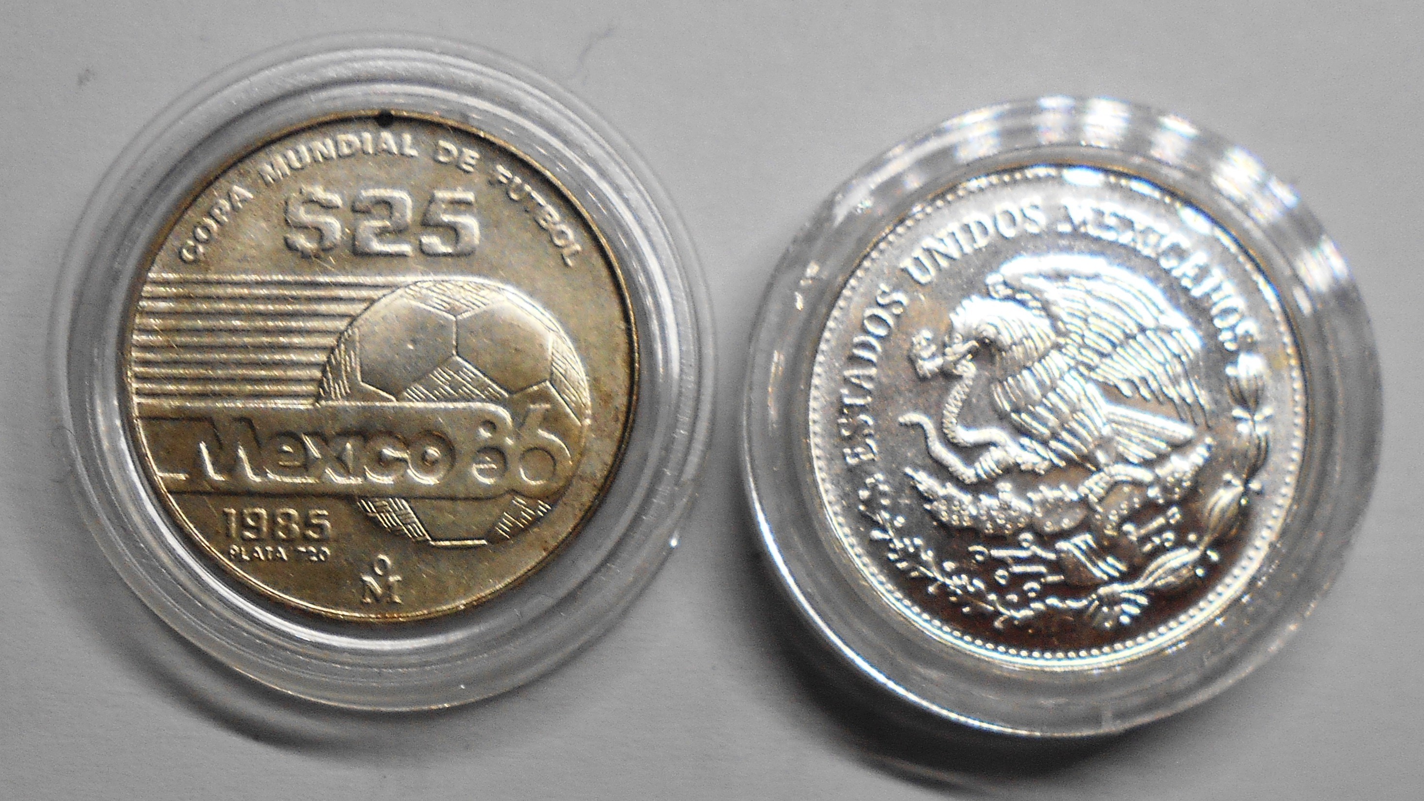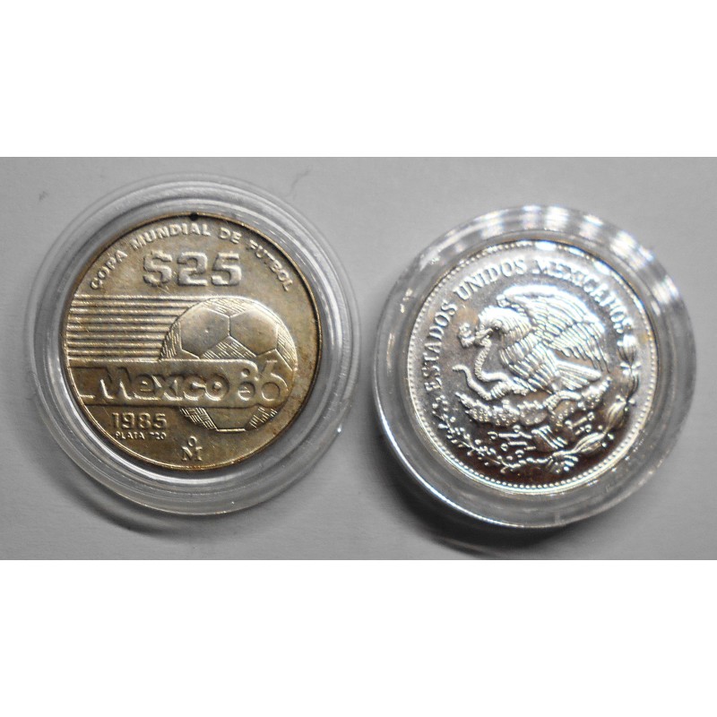 MEXICO 25 Pesos 1985 AG World Cup Soccer