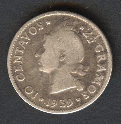 DOMINICAN REPUBLIC 10 Centavos 1939 AG