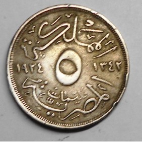 EGYPT 5 Milliemes 1924 Fuad 1°
