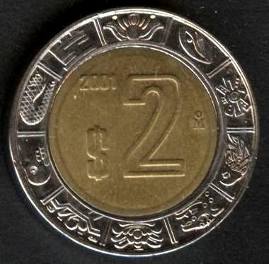 MEXICO 2 Pesos 2001 Bimetallic