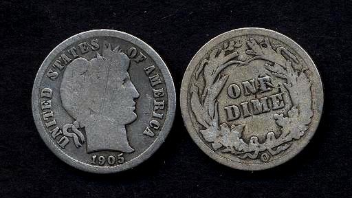 USA Barber Dime 1905o AG