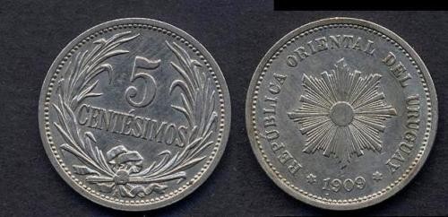 URUGUAY 5 Centesimos 1909