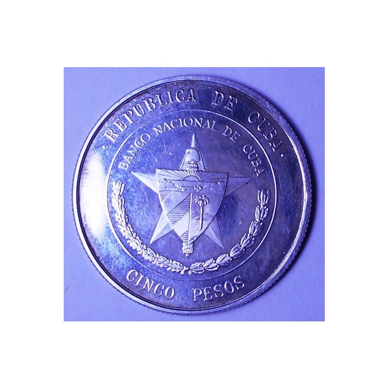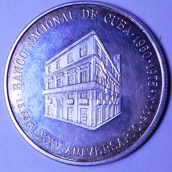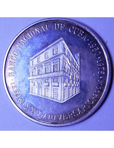 CUBA 5 Pesos 1975 25th Anniversary National Bank AG PROOF