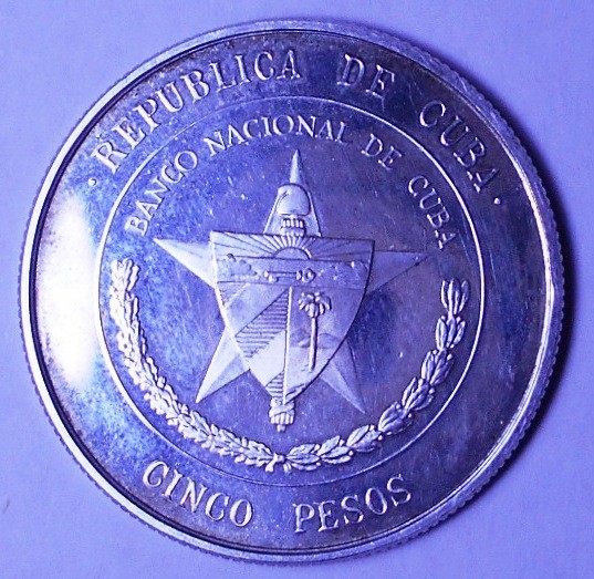 4. CUBA 5 Pesos 1975 25th Anniversary National Bank AG PROOF