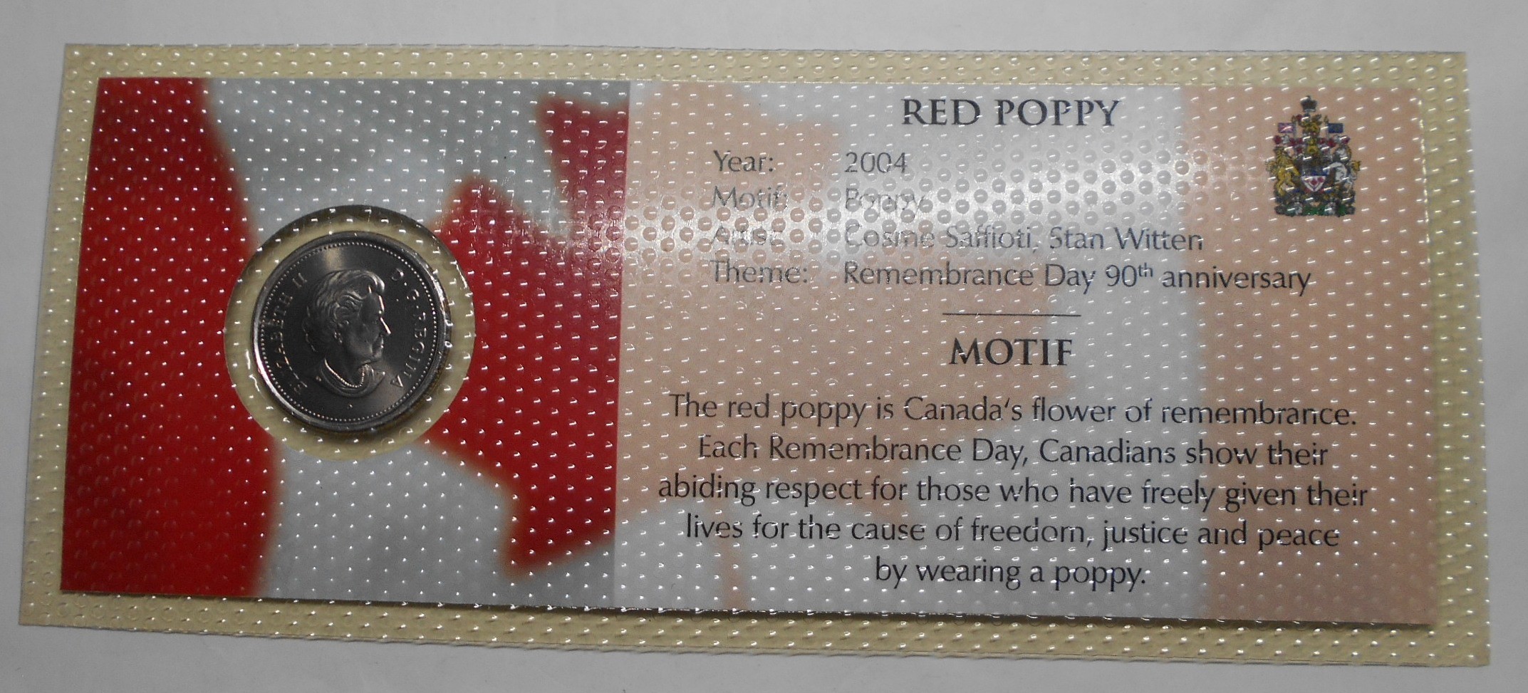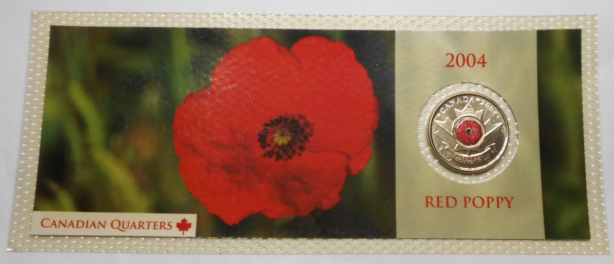 CANADA 25 Cents 2004 Red Poppy Original Folder