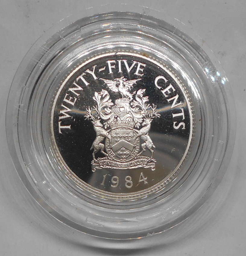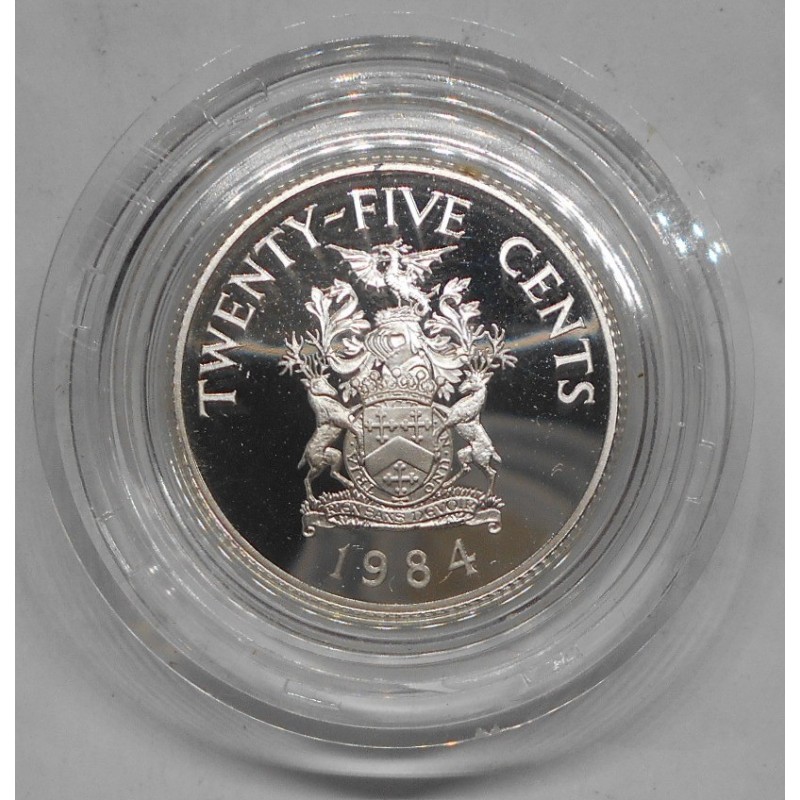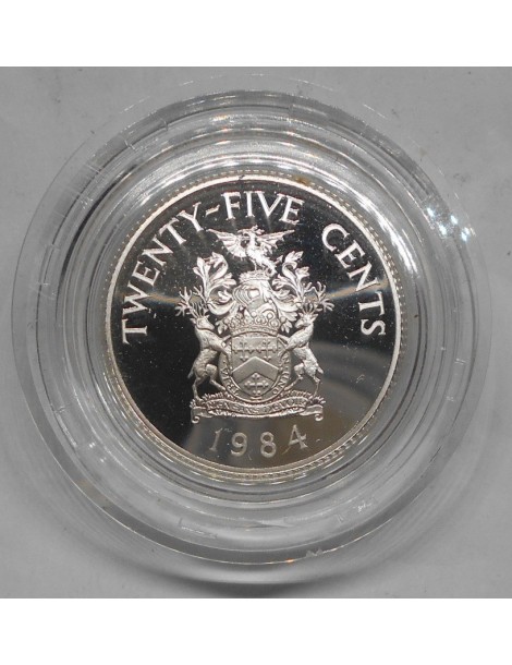 BERMUDA 25 Cents 1984 375th Ann. of Bermuda (Warwick Parish arms) AG PROOF