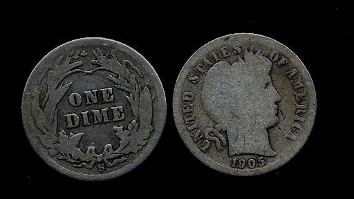 USA Barber Dime 1905s AG