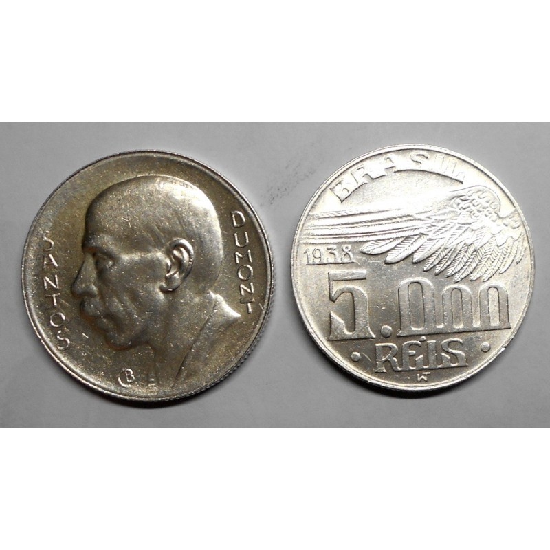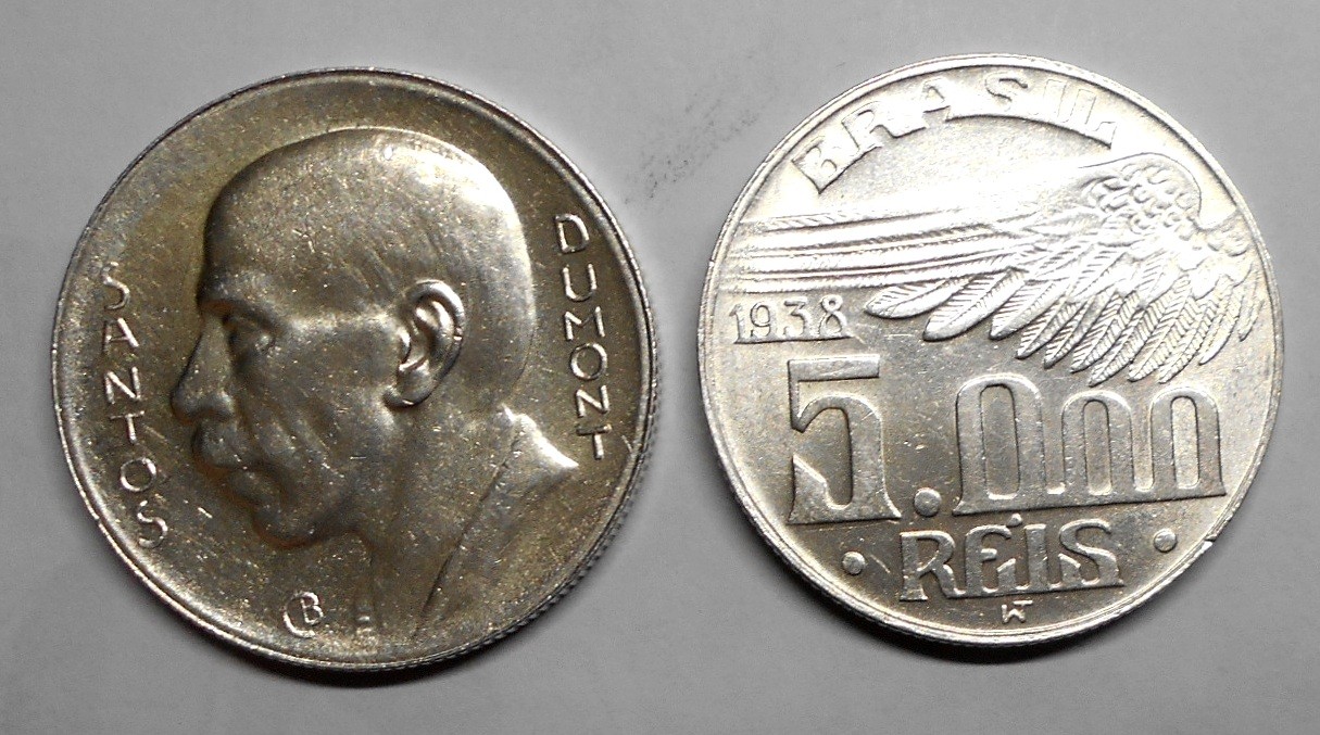 BRAZIL 5000 Reis 1938 AG Santos Dumont