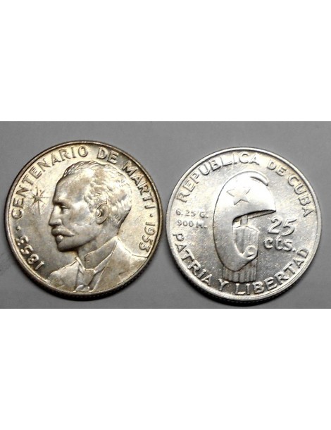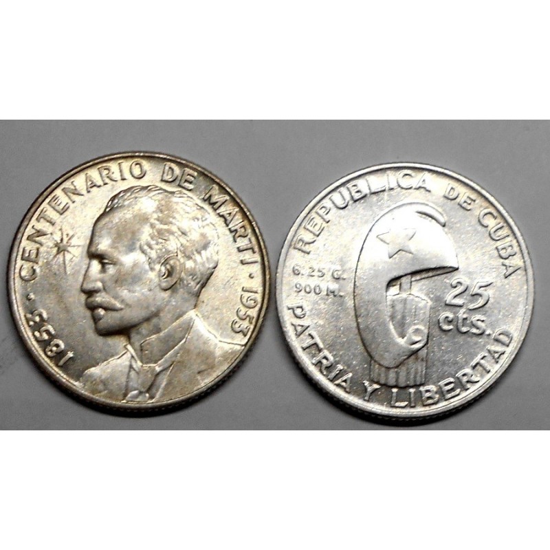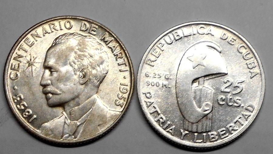 4. CUBA 25 Centavos 1953 Jose Marti AG