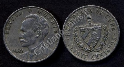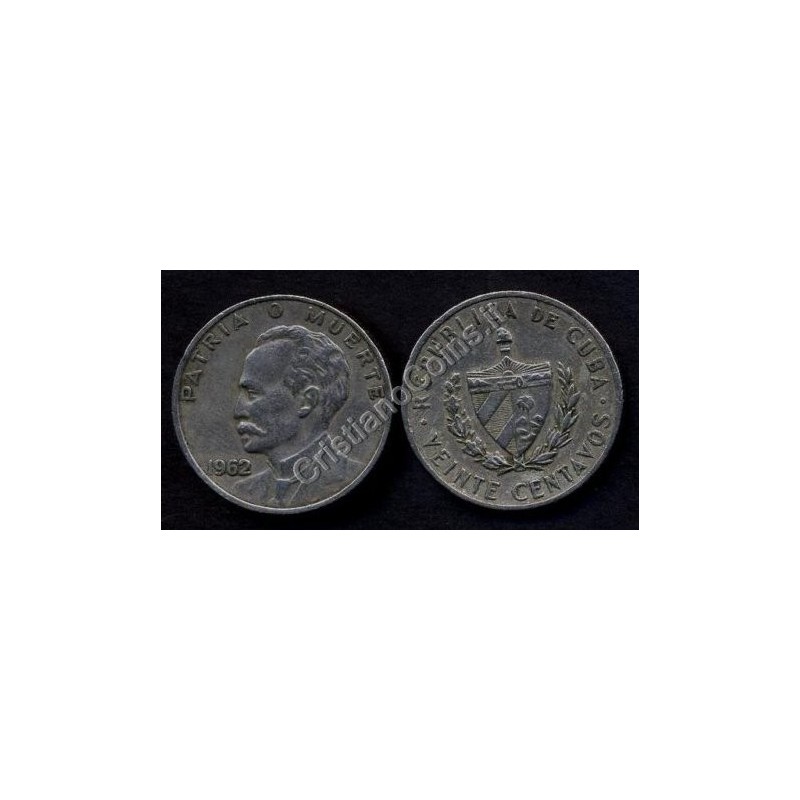 4. CUBA 20 Centavos 1962 Jose Marti
