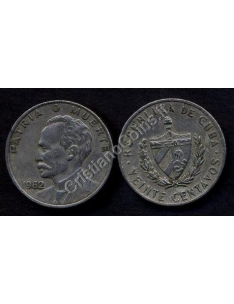 CUBA 20 Centavos 1962 Jose Marti