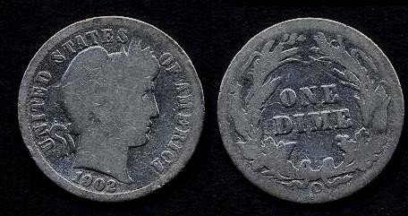 USA Barber Dime 1902o AG