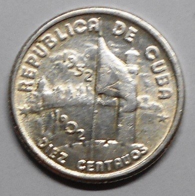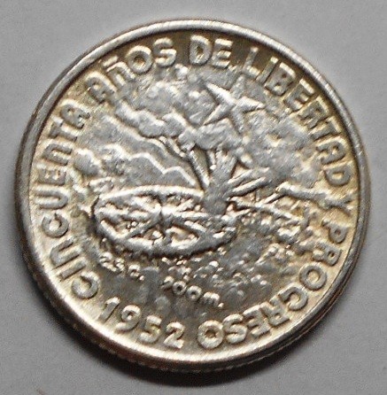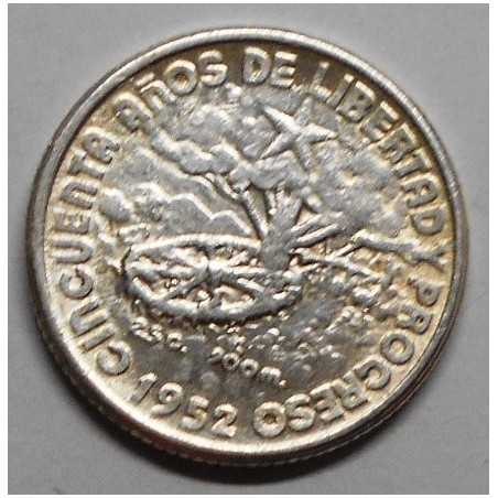 4. CUBA 10 Centavos 1952 50th Year of Republic AG
