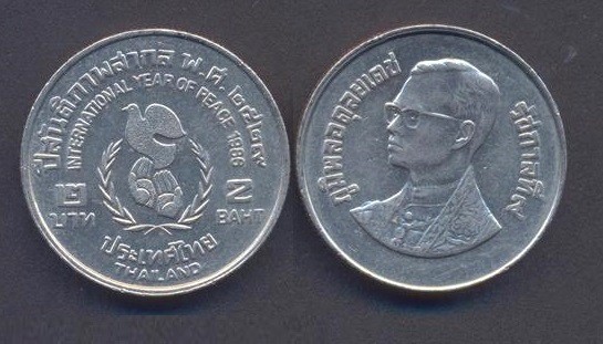 THAILAND 2 Baht 1986 (BE2529) Year of Peace