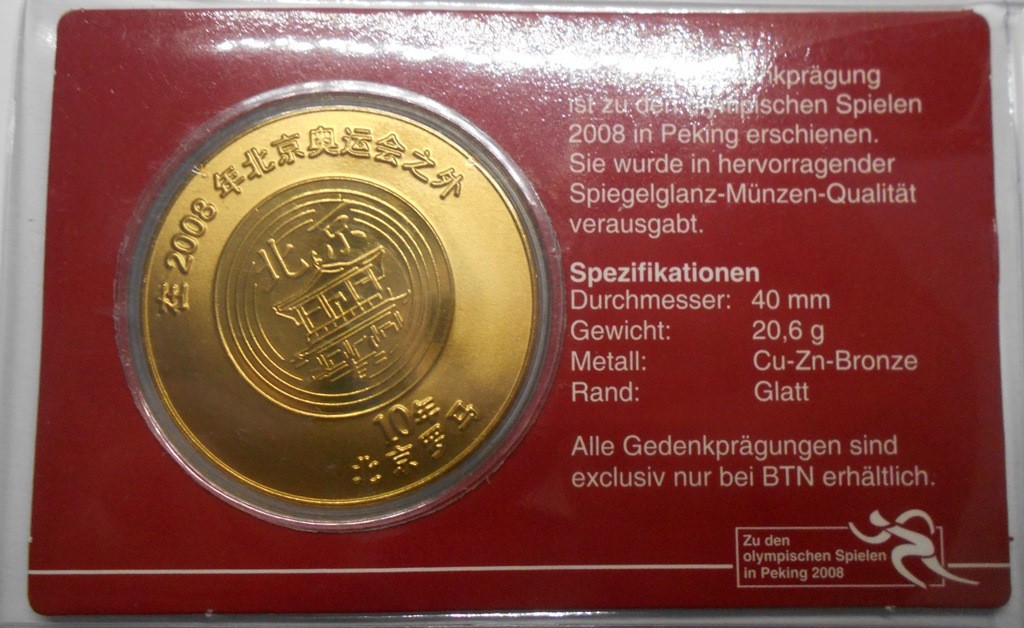 CHINA 10 Yuan 2008 Beijing Olympic -Basketball - coincard