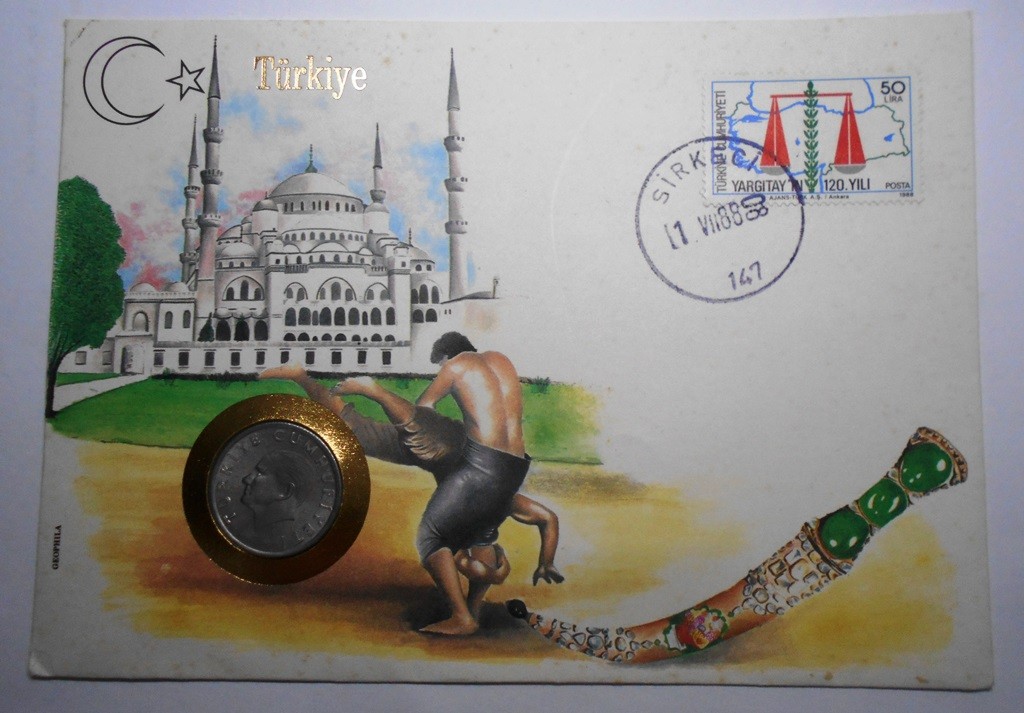 NUMISBRIEF Turkey 10 Lira 1988 with stamp