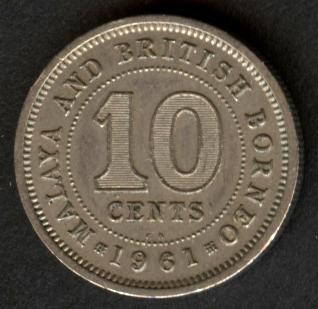 MALAYA AND BRITISH BORNEO 10 Cents 1961 KN