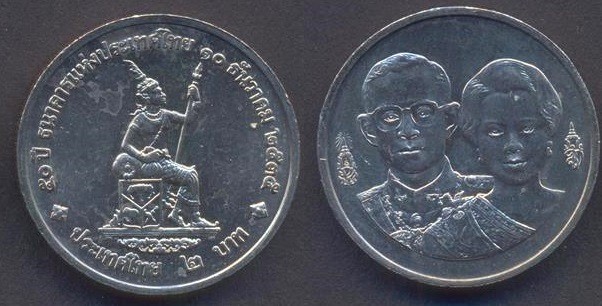 THAILAND 2 Baht 1992 Ann. National Bank