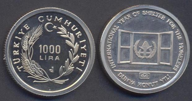 TURKEY 1000 Lira 1987 Shelter for the Homeless Rare