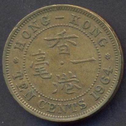HONG KONG 10 Cents 1964