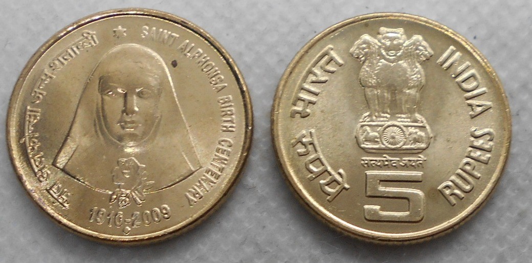 INDIA 5 Rupees 2009 B St. Alphonsa