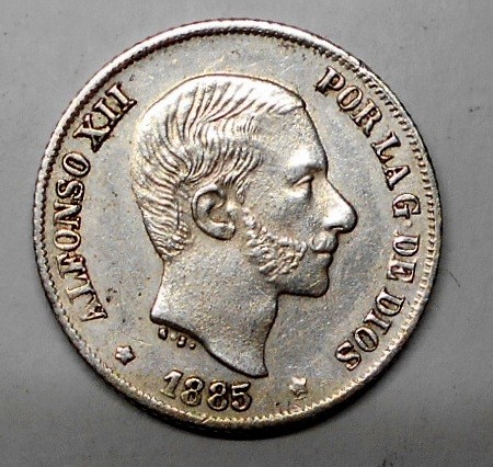 PHILIPPINES 10 Centavos 1885 Alfonso XII AG