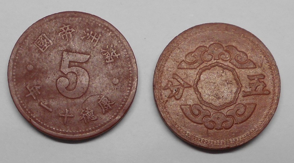 CHINA MANCHUKUO (Japanese Occupation) 5 Fen 1944 (KT 11) rare
