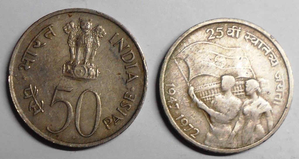 INDIA 50 Paise 1972 B 25Th Ann. Of Indipendence