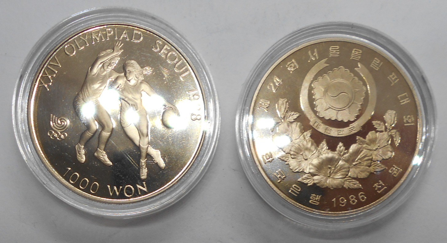 SOUTH KOREA 1000 Won 1986 Olympics '88 Basketball PROOF