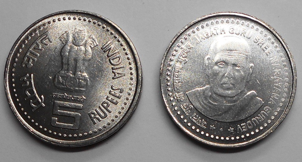 INDIA 5 Rupees 2006 (B) Jagathguru Sree KM 335a